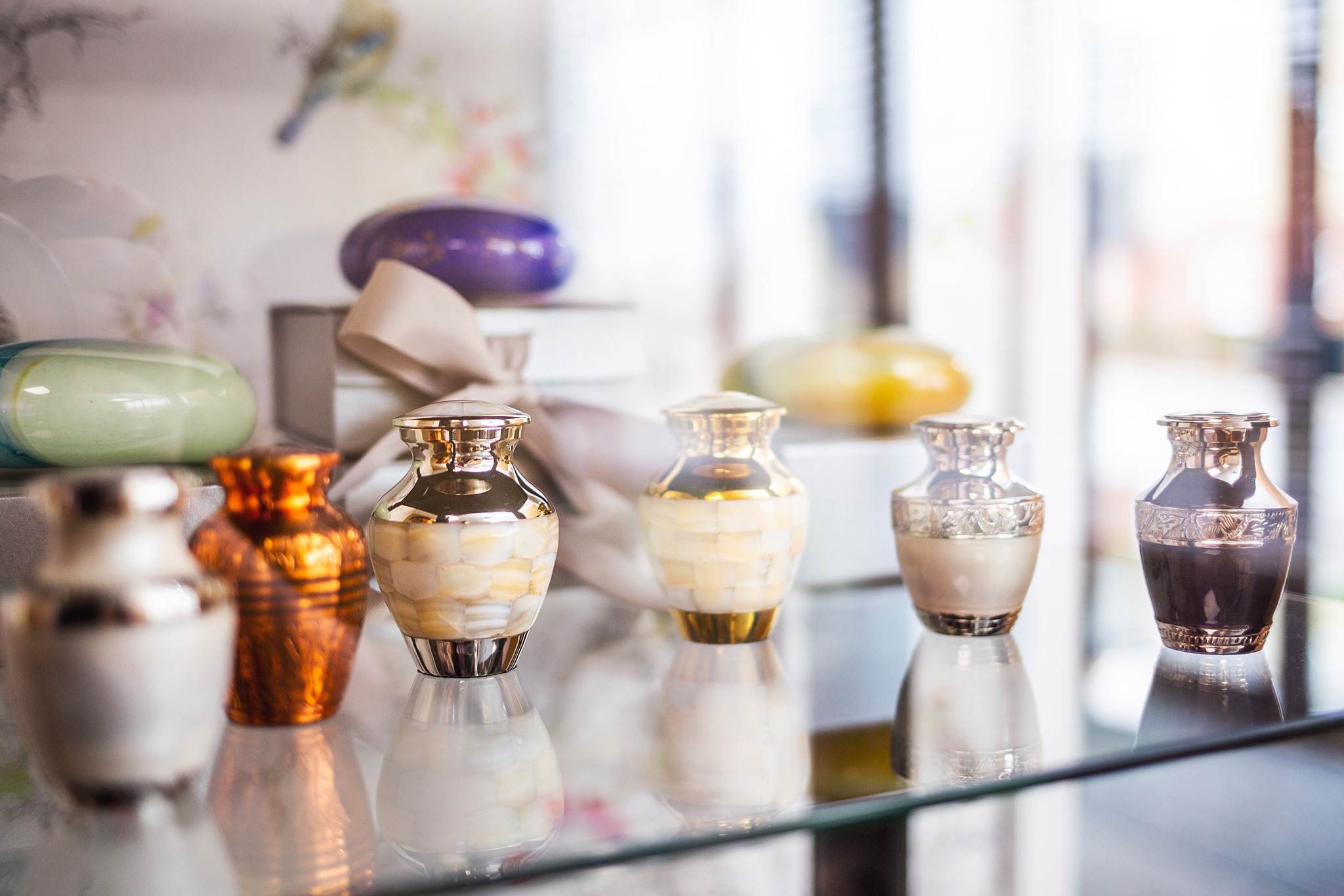 Urns and caskets serve as dignified vessels to honour and preserve the memory of loved ones.